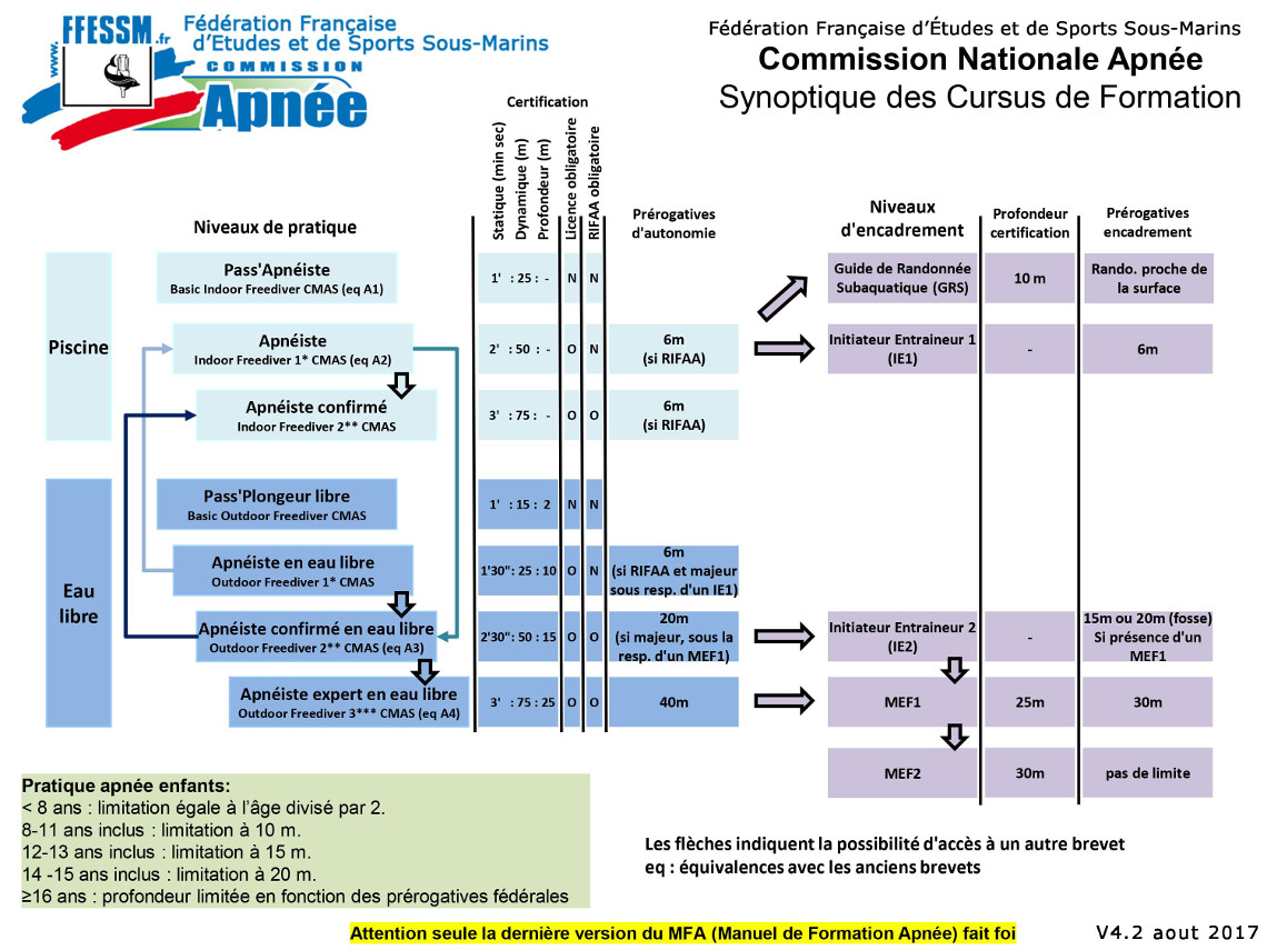 Une quarantaine d'initiateurs et une trentaine de moniteurs fédéraux proposent des formations du A1 au MF1 tous les ans. Ces formations entrent dans les cursus FFESSM.